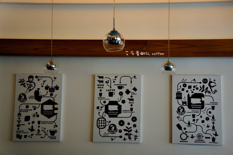 後方牆面上是簡易的咖啡製作流程圖,可愛 ^^
