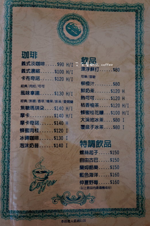 除了義式咖啡及特調飲品之外,還有單品,價格在130-160元之間,