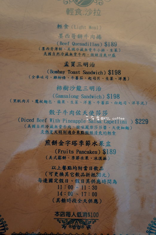 輕食類另外還有濃湯及田園沙拉、鮭魚沙拉80-130元之間,