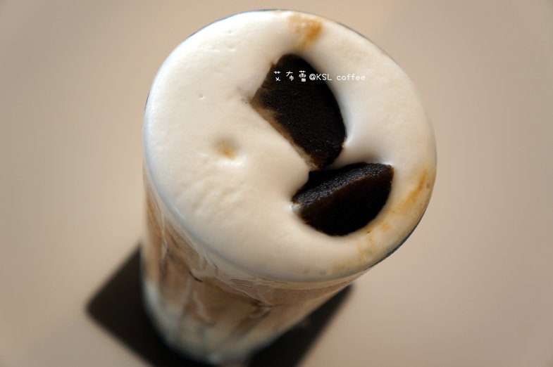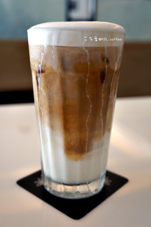 奶泡綿密到冰磚沉不下去,卡布很香醇,入口回甘,