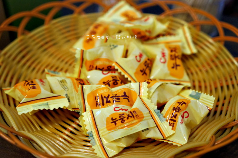 韓國料理本身調味較重,所以店家都會在櫃台旁免費提供糖果,