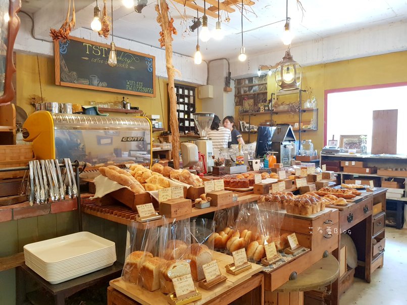 一旁就是烘焙室,可以看到戴著頭巾的型男師傅走來走去忙錄著
