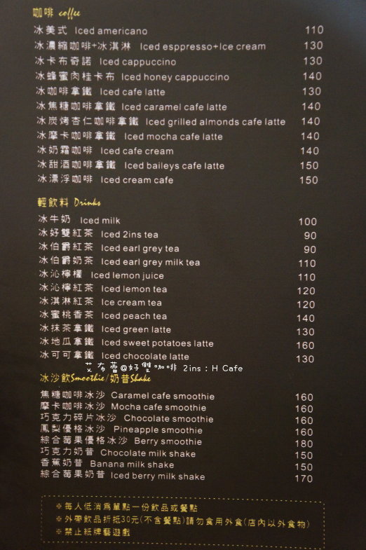 「好雙咖啡 2ins : H Cafe」當初看到這個店名時非常的感興趣,