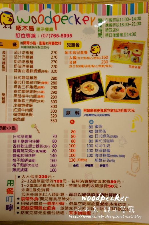 大人低消230元(小朋友低消請參考菜單下方的附註)