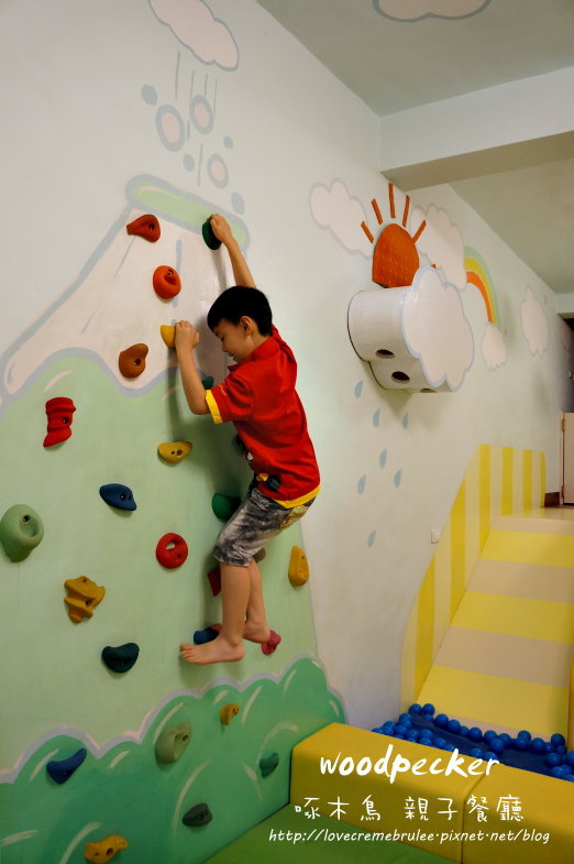 有溜滑梯、球池,還有攀岩可以玩哦~
