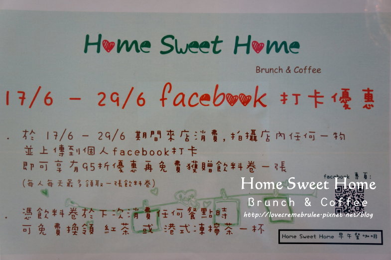 期間限定,FB打卡有95折優惠,以及 "限下次使用" 的飲料卷一張。
