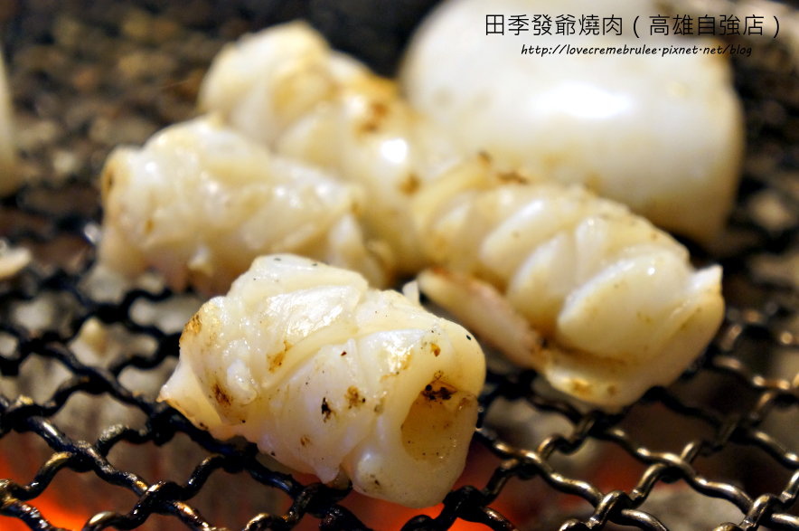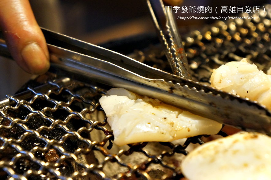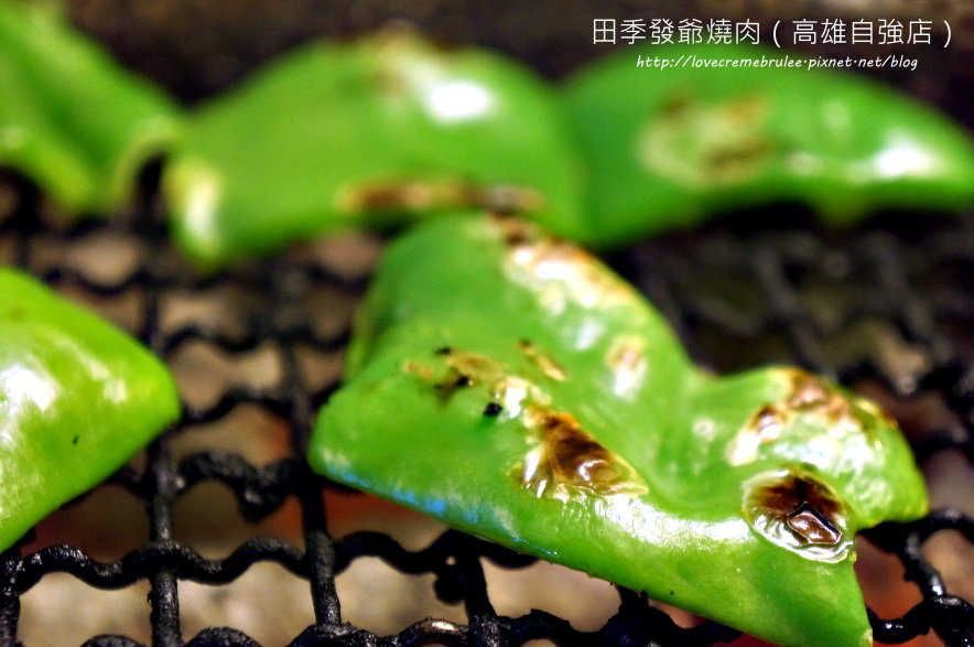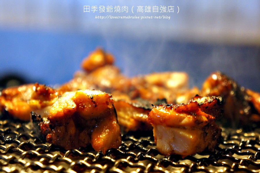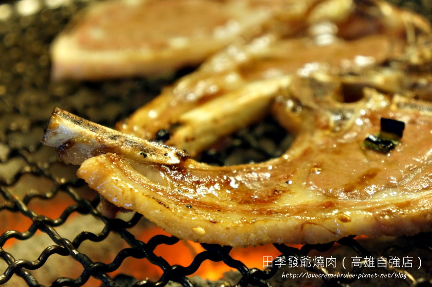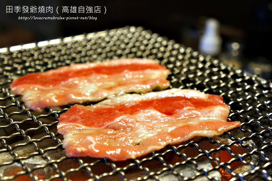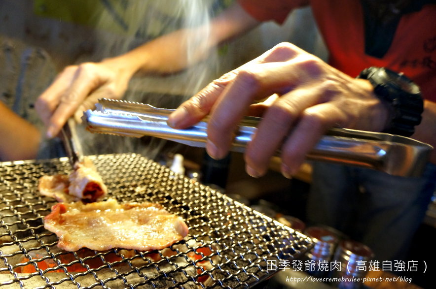 一面烤到血水冒出後就可以敲一敲烤網讓肉片鬆動