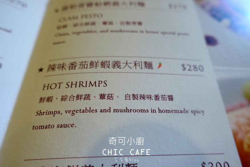 辣味鮮蝦蕃茄義大利麵 280元