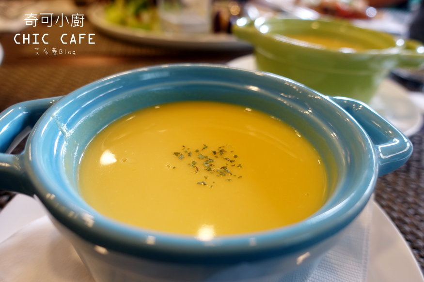 所以在介紹菜單的同時,先上了兩碗南瓜濃湯轉移他們的注意力