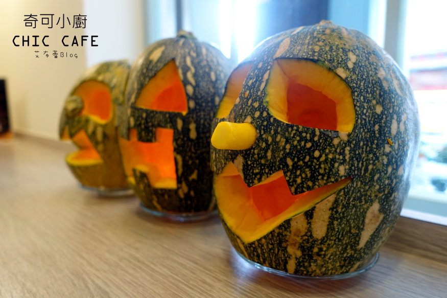 服務人員又在一樓擺上了三顆南瓜頭