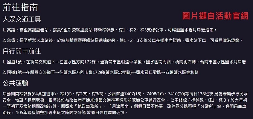 導航:設月津港燈節或月津港親水公園或鹽水橋南老街皆可