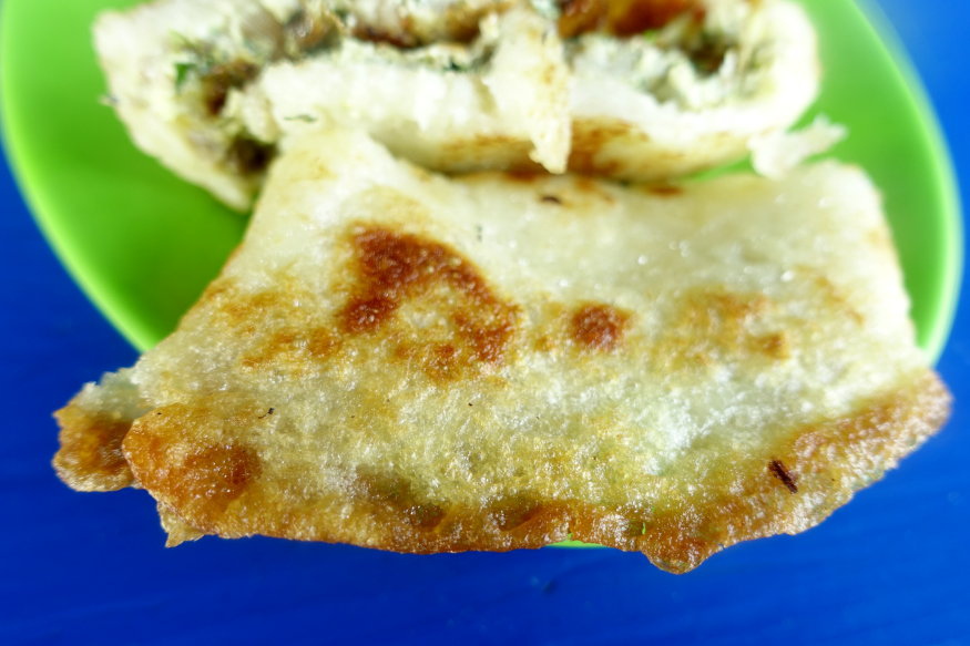 蛋餅表面煎到金黃微脆