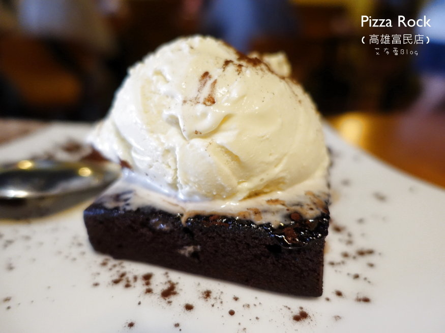 布朗尼外表烤的薄脆,裡頭紮實潤澤,巧克力濃厚