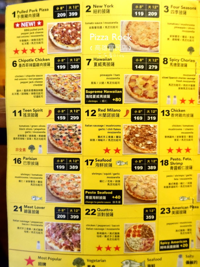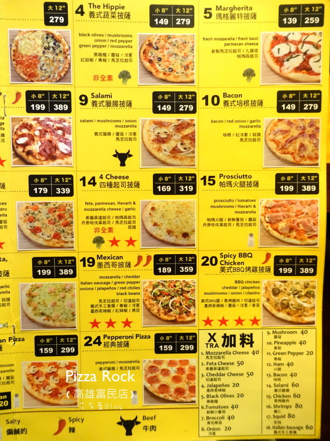 披薩種類有24種,還有沙拉、炸物、焗烤、甜點、飲料...選擇很多