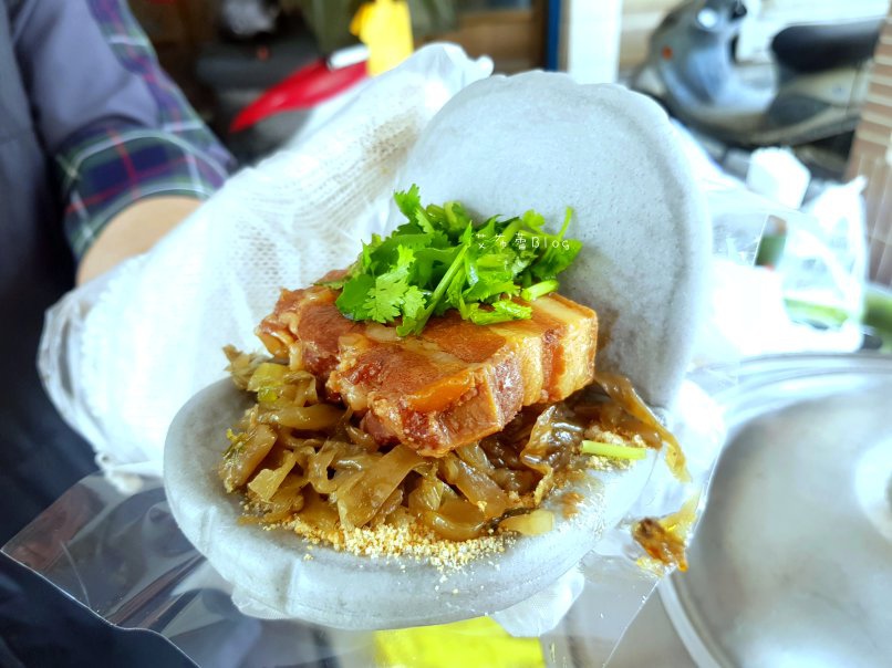但整體好吃,酸菜脆、2cm厚的三層肉很柔軟,還有花生粉的甜香