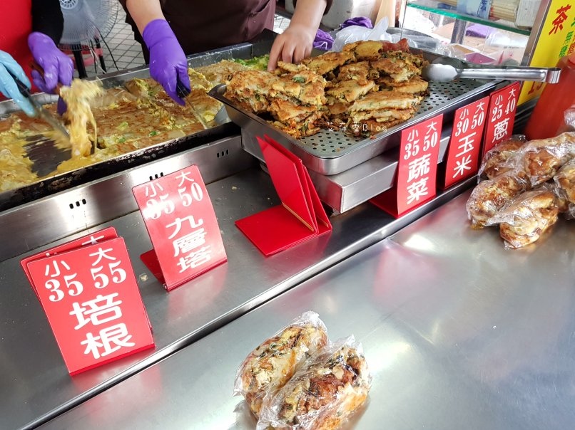 蛋餅有很多種口味,而且重點是...它是像大阪燒正方形又厚實款 完全吸引人
