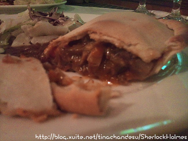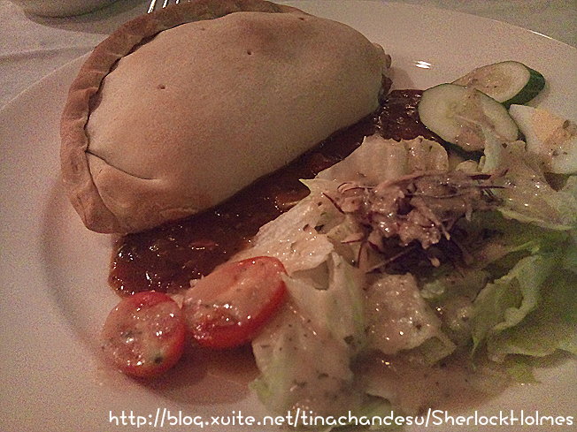 牛肉派旁邊淋的是黑楜椒蘑菇醬吧,有加分的效果,不過主食牛肉派本身單吃就很贊了,
