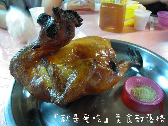 完全是走樸實路線,沒有太多餘的擺飾,就是一整隻雞放在鐵盤上就上桌了,旁邊附了一小碟的楜椒鹽。