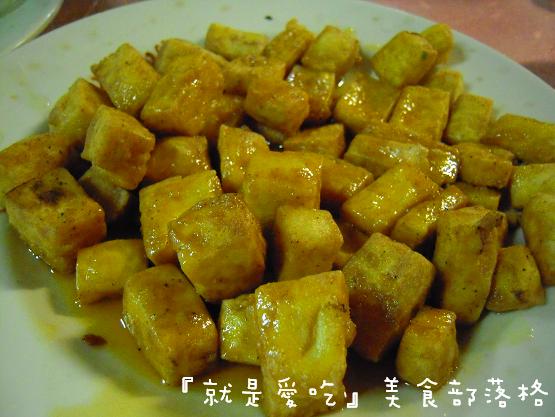 好吃~真好吃!豆腐應該有先炸過或是過油過,總之就是外皮脆脆的,內餡軟燙,拌上微酸甜的醬汁,