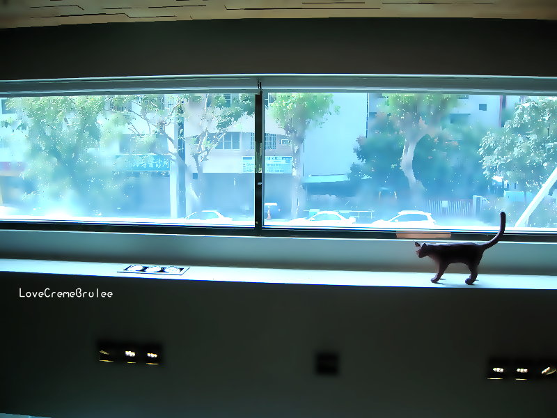 這個梗就很有意思,不注意看還以為是真的貓兒聞到麵包香氣跑進店內了呢~