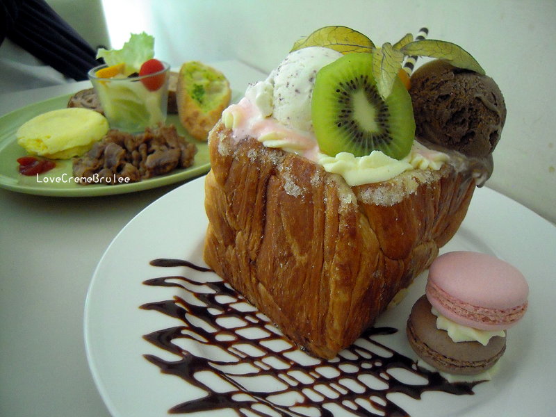 蜜糖土司啊~只能說甜甜甜,丹麥土司烤的太酥了,吃不出麵包的鬆軟。